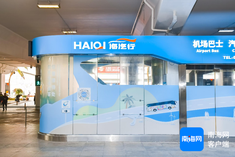 1月21日,海口美兰机场到大厅外,一座形似旅游大巴车造型的“腾博tengbo9885官网行”美兰机场售票亭正式启用。